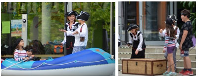 Am letzten Schultag nahmen die drei vierten Klassen Abschied von ihrer alten Schule. Vor den Augen eines erwartungsvollen Publikums (bestehend aus allen Schülerinnen und Schülern der 1.-3. Klassen sowie zahlreichen Eltern und Familienangehörigen) gingen vier Piraten in einem kleinen Theaterstück auf Schatzsuche. Dabei blickten sie auf ihre abenteuerliche Grundschulzeit zurück, z. B. in Form eines von allen Kindern aufgeführten Tanzes sowie eines Ausblicks auf die Zeit an den weiterführenden Schulen. Zu guter Letzt ließen die Kinder noch Luftballons mit angehefteten Wünschen steigen, bevor sie schließlich von der Rektorin, Frau Norkauer, ihr Abschlusszeugnis erhielten und endgültig aus der Schule „geschmissen“ wurden.